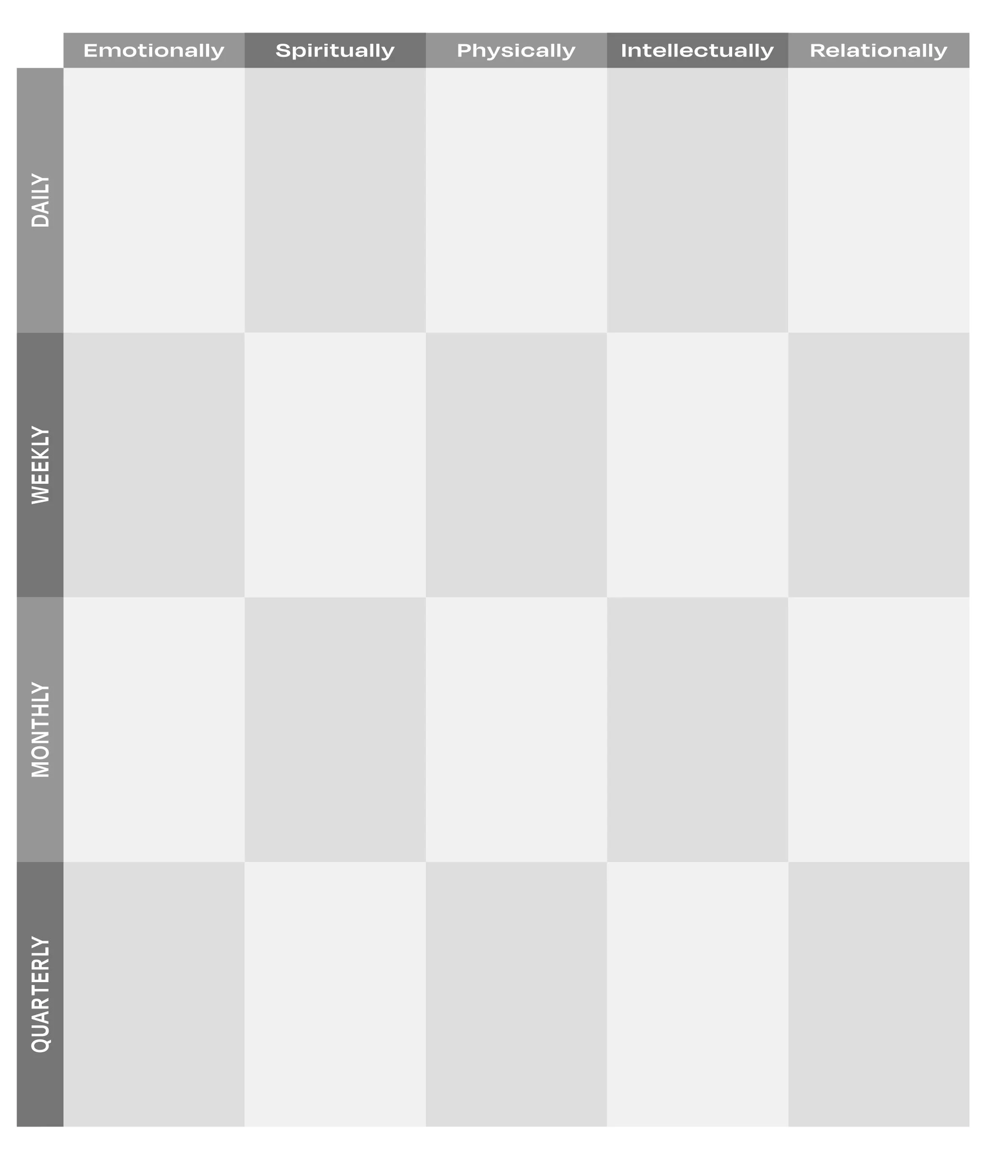 In the book, The Well Worn Narrow Path, we’re encouraged to actually write out the daily, weekly, monthly, and quarterly rhythms we prayerfully want to engage in to abide in Jesus, the True Vine. This is something that will change depending on the particular season you find yourself. For some, writing these down in the book might seem too permeant. Here is a pdf of the worksheet that you can download, so you can make as many revisions as you see fit.